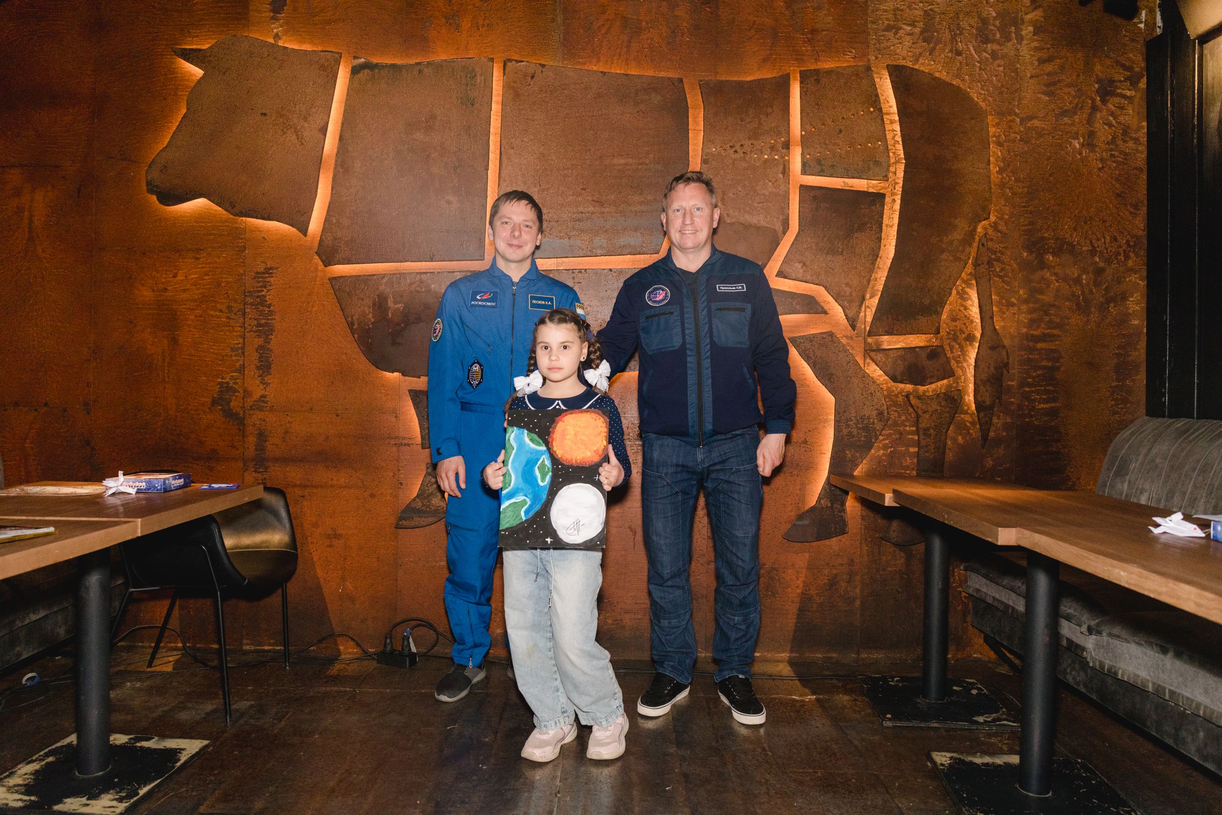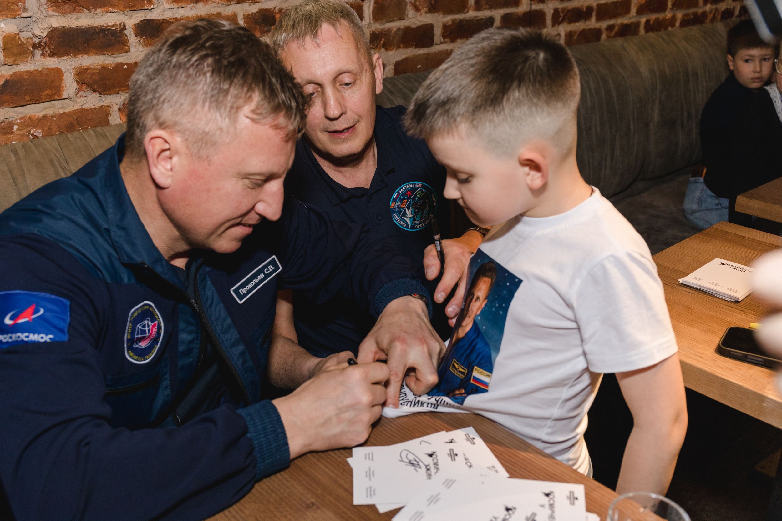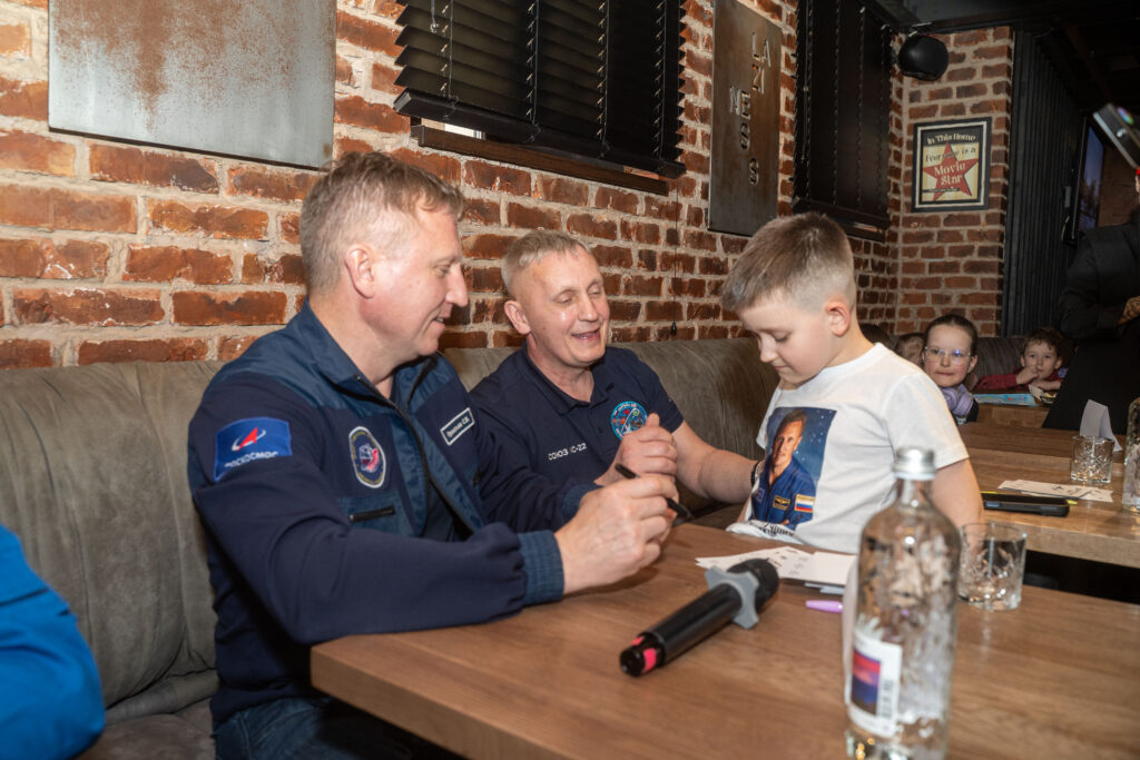 Дети подготовились к встрече со всей серьезностью: во время автограф-сессии космонавты получили в подарок десятки трогательных детских рисунков и самодельных поделок на тему межпланетных перелетов. Каждый ребенок смог пожать руку своему герою и сделать с ним памятное фото.