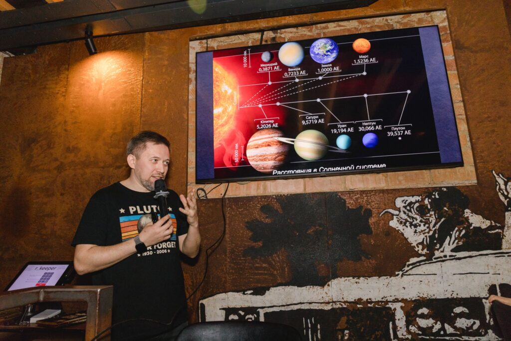 Программа началась с увлекательной лекции директора Псковского планетария Владимира Колпакова. Интерактивный формат позволил детям не просто слушать, но и активно участвовать в дискуссии: ребята отвечали на вопросы лектора и демонстрировали глубокие знания об устройстве Солнечной системы.