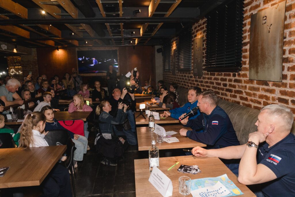Эмоциональным пиком вечера стала встреча с действующими космонавтами — Героем России, заместителем командира отряда космонавтов Роскосмоса, уроженцем Екатеринбурга Сергеем Прокопьевым, Героем России, совершившим 5 полетов в космос, одним из рекордсменов по суммарной продолжительности пребывания в космосе Александром Калери и космонавтом, лишь недавно вернувшимся с орбиты, Кириллом Песковым. Во время сессии вопросов и ответов дети интересовались не только бытом на МКС, психологической подготовкой космонавтов, хобби космонавтов на орбите, но и тем, «страшно ли выходить в открытый космос» и «какой на вкус космический воздух».
