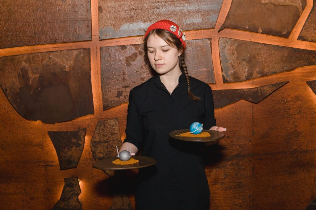 Кульминацией программы стало кулинарное шоу от шеф-повара Максима Осипова. Прямо в зале ресторана при активном участии гостей были приготовлены «земные» блюда с «космическим» характером. Участники мастер-класса смогли увидеть, как брутальный гриль сочетается с элементами молекулярной кухни, создавая уникальный гастрономический опыт.